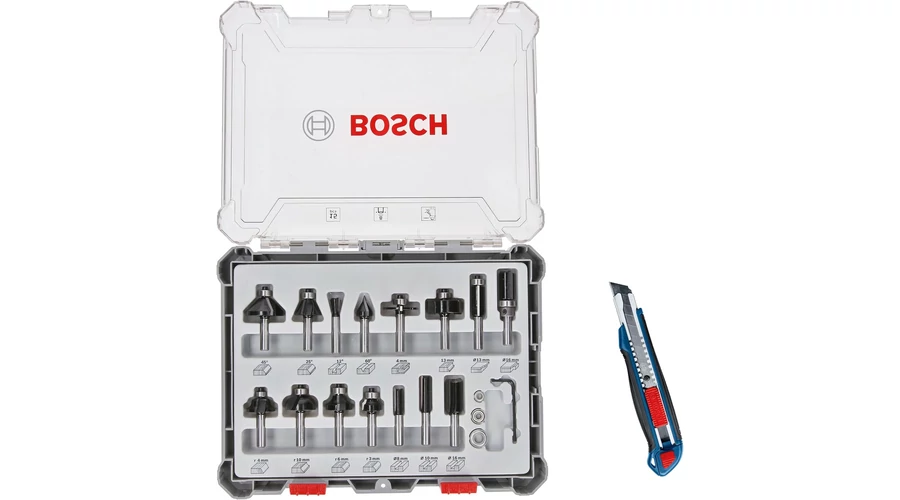 Tartalmaz | Maró/élmaró, cinkmaró, 2 db fázismaró, V-horonymaró, tárcsamaró, hajtogatómaró, római profilmaró, torokmaró, 2 db lekerekítőmaró, 2 db 2 élű horonymaró, 3 élű horonymaró + Bosch vágókés |